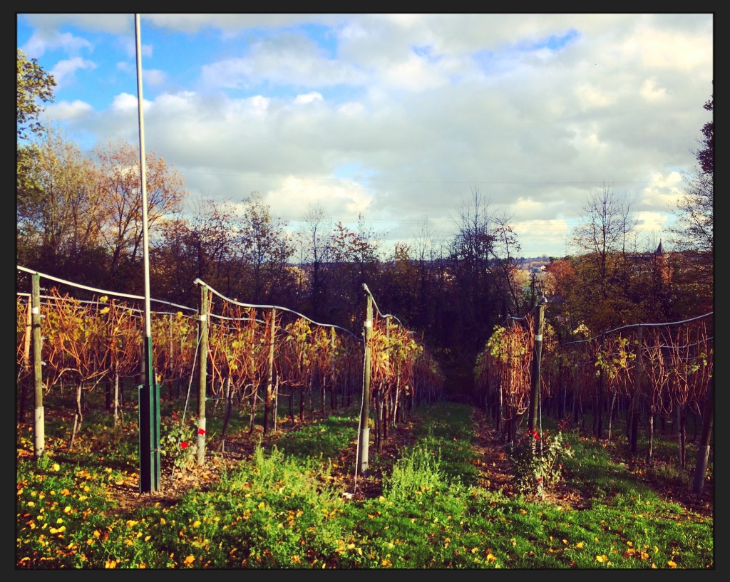 Wiel Hakens, de voorzitter van de Winzer van Rolduc, geeft me deze herfstige novembermiddag een rondleiding door de wijngaarden van Rolduc. Wiel is een enthousiaste verteller en geniet zichtbaar van zijn werk. De eerste oogst in 2002 “was niet te drinken,” maar twee jaar later “begon het eindelijk ergens op te lijken.” Iedere maandagochtend komt een groep vrijwilligers (‘de oudste is 95!’) snoeien en grasmaaien, “en natuurlijk een glaasje wijn bij de lunch,” vertelt Wiel met pretogen. Geheel in de geest van de middeleeuwse kanunniken die vroeger hard werkten in de wijngaarden van Embrico von Mayschoss aan de Ahr.