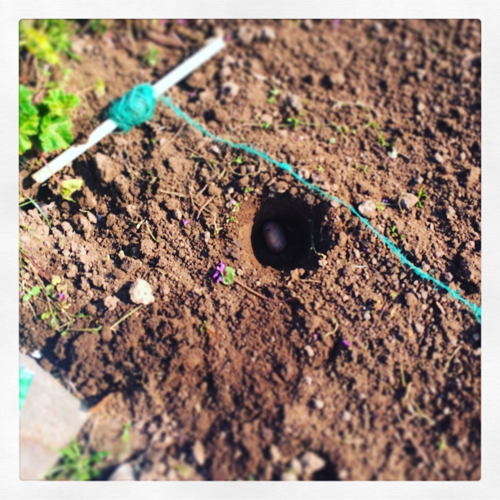 Eind april. De eerste zonnestralen nodigen uit om met schep en schoffel het onkruid te lijf te gaan. Voor mijn gevoel begint nu het échte werk. Ik leg een klein aardappelveldje aan. Tijdens het ploegen en zwoegen zie ik in gedachten “De Aardappeleters” van Van Gogh voor me. Ik twijfel of ik dit wel zo leuk vind. Maar een paar weken later verschijnen kleine aardappelstruikjes in rijen. Een wonder!