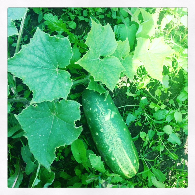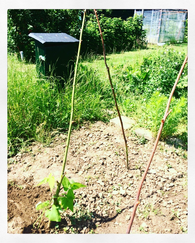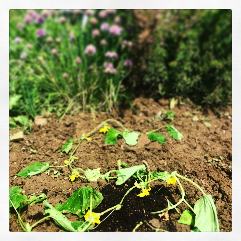 Oktober sluipt stilletjes de moestuin in. Moeder natuur geeft me nog een heel klein oranje pompoentje en een grappig soort augurk (geen komkommer, geen courgette, en ook niet echt lekker… maar goed, oogst is oogst en het staat leuk in de fruitmand) en twee (ja, echt twee!) gevlekte struikbonen, plus een leuke zalmroze Dahlia. Wie het kleine niet eert…