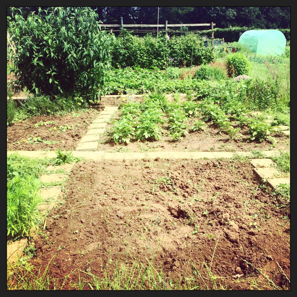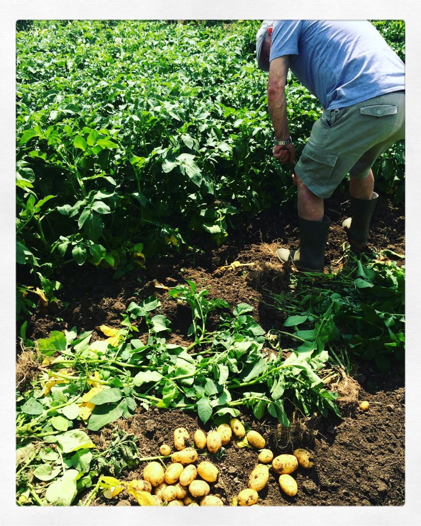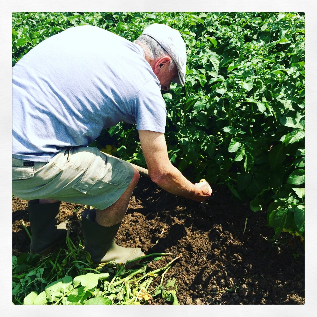 Juni. De aardappelen aarden goed in de vette klei. Ze staan mooi opgesteld in rijtjes. Langzaamaan begint het warmer te worden. Besjes aan de struik verkleuren zachtjes van lichtgeel naar rozeoranje en dan blozend rozerood. Het is bijna zomer.