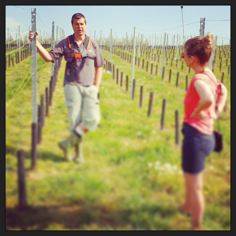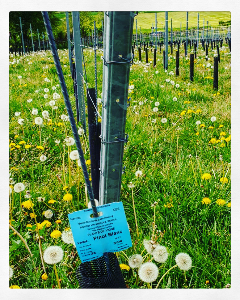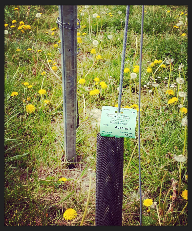 Maurice staat als een échte wijnboer in de wijngaard en vertelt meteen honderduit ‘’Domein Riesenberg is een halve hectare groot en bevindt zich aan de rand van het Savelsbos. De grondsoort is twee meter vruchtbare Limburgse Löss met daaronder maaskiezels en keien en wat kalksteen. Er staan sinds begin vorig jaar duizend stokken pinot gris, vijfhonderdenvijftig auxerrois en honderdvijftig stokken Pinot Blanc’s op een zonnige zuid-westhelling gericht op het dorp Gronsveld’’.