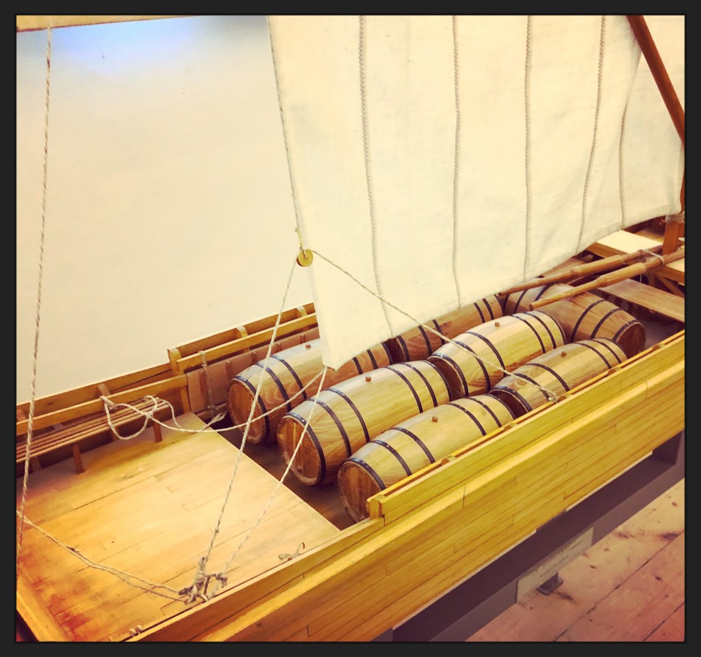 Meer wijngeschiedenis kun je vinden in het kleine museum van Kloster Eberbach. Er staan maquettes van het klooster en ook een op schaal gemaakt schip met houten vaten die via de kronkelende Rijn werden verscheept, onder andere naar Keulen. Eberbach beschikte destijds over een vloot van dertig van deze houten schepen. Leuk om te zien, maar genoeg wijngeschiedenis... het werd tijd om een duik te nemen in het goddelijke monnikensap. Op naar de Vinotheek!