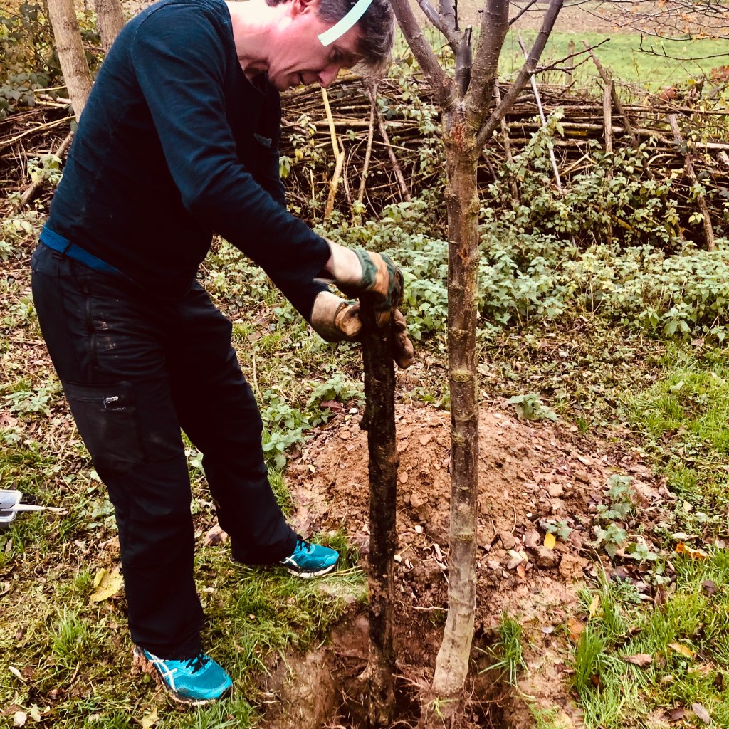 In november arriveerden de fruitbomen die we al in augustus hadden uitgezocht. Het planten viel zwaarder dan gedacht en we moesten extra hulptroepen inschakelen. Gelukkig hebben we de klus uiteindelijk geklaard.