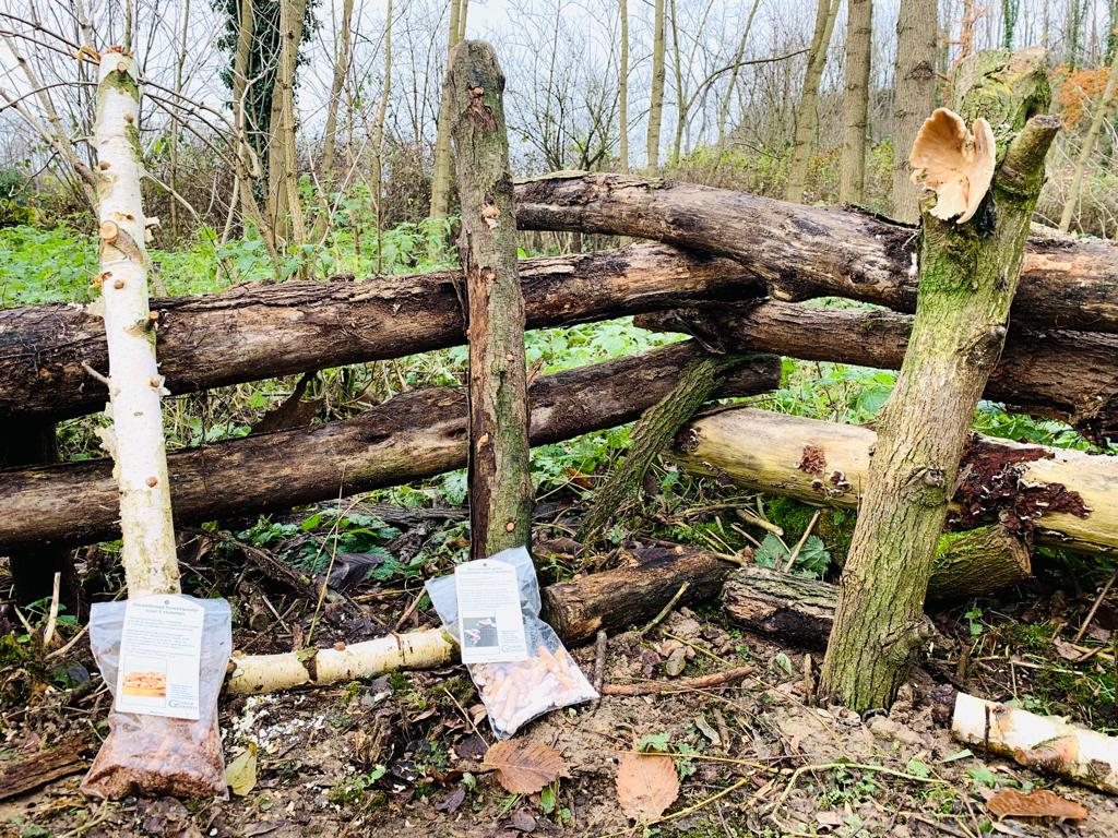 Deuvelbroed is een slimme methode: houten deuveltjes geënt met een schimmelsoort. Zwammen voelen zich namelijk thuis op dode plekken of wondplekken van loofhoutsoorten zoals beuk, acacia en berk. Dit ‘parasiterende schimmelgespuis’ kweek je eenvoudig zelf op dood hout (zie de foto hieronder). Wij hebben gekozen voor drie eetbare soorten: de grijze oesterzwam, de pruikzwam en het fluweelpootje.