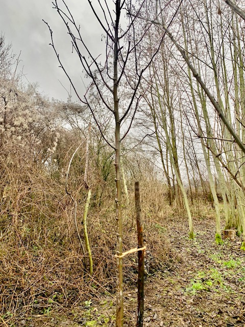 Naast de fruitbomen en struiken, planten we inheemse planten en bomen: wilde kamperfoelie, gele kornoelje en zwarte populieren. De zwarte populier blijkt het later niet te redden. We planten later in het jaar nog een zomerlinde. Er worden nog een wilde appel, een egelantier (wilde roos) en sleedoorn toegevoegd aan de collectie inheemse planten. Verder registreert de wildcamera allerlei ”gespuis”, zoals vossen, een gulzige reiger en de das, die struinde in de nachtelijke uren door de wijngaard op zoek naar sappige druiven.