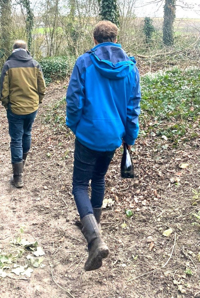 We lopen door de heuvel op. ”De laatste wijnheer was Jan van Strijthagen. Die was heer van Valkenburg maar ook van Eys en had een adelijk wijnhuis hier. Dat is geen opslagruimte geweest maar dat was de bierbrouwerij die hij verbouwde tot wijnhuis. Kortom de wijnbouw in Eys, op de kalkgrond met zijn terrassen, dat is iets wat uit een ver verleden komt”. Chris: ”Hier heeft dus ooit een zeshoekige burght gestaan. Door middel van satellietopnames kun je dingen zien die honderd jaar geleden verdwenen zijn en die toch op een of andere manier in het landschap tot uitdrukking komen”.