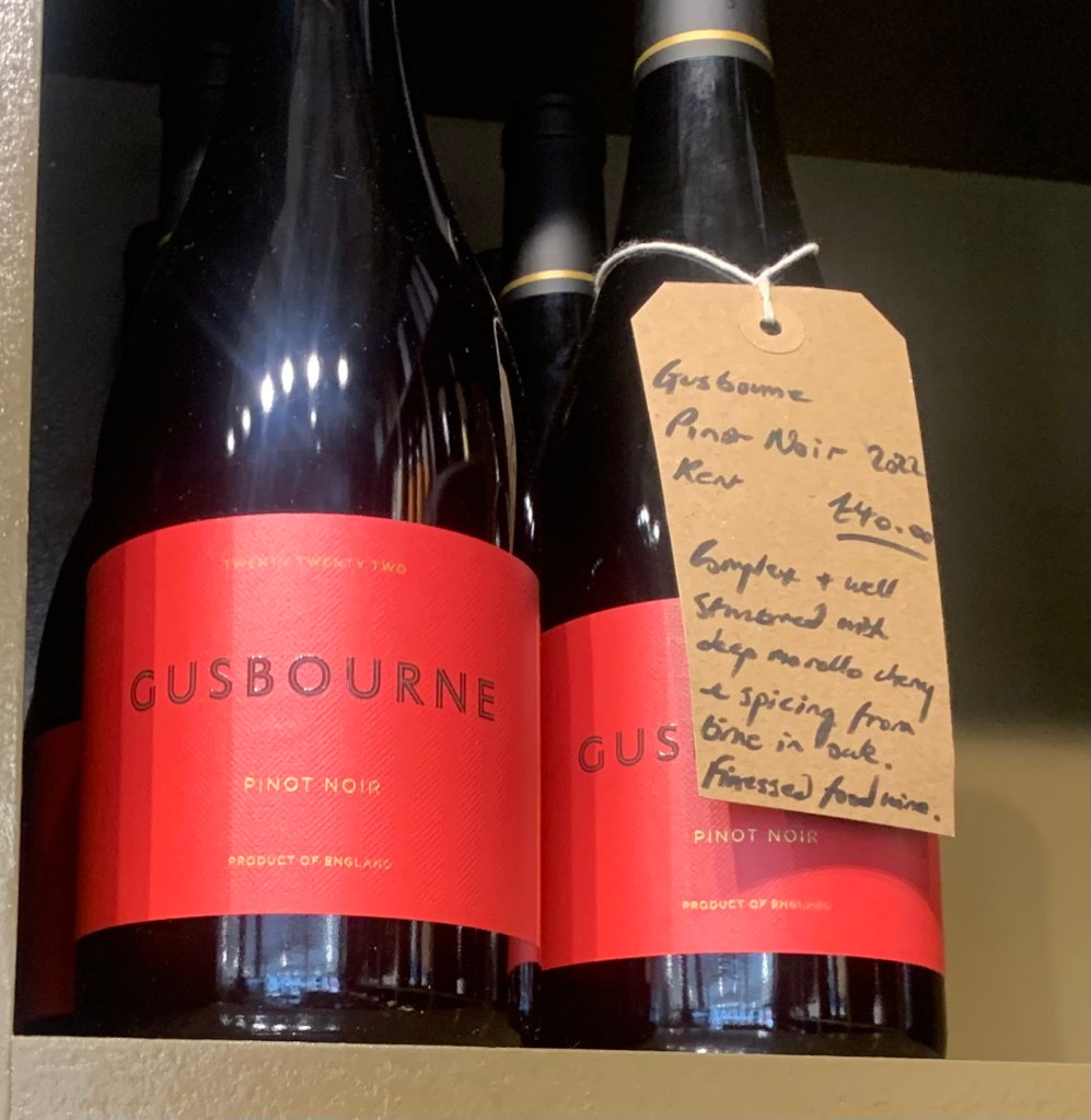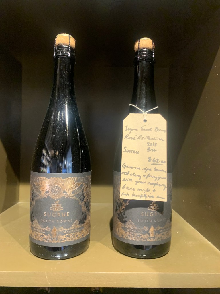 De proeverij bestond uit drie witte wijnen, allemaal afkomstig van de kalkrijke bodems tussen Kent, Hampshire en Sussex – dezelfde bodemsoort die ook in de beroemde Champagnestreek te vinden is. Deze unieke ondergrond zorgt voor frisse, mineraalrijke wijnen die perfect het terroir weerspiegelen. Terwijl we sipten, viel mijn oog op de flessen om ons heen. Wijnhuizen zoals Gusbourne, Ridgeview en Sugrue stonden er trots uitgestald. Elk van deze producenten staat bekend om hun hoogwaardige mousserende wijnen, maar ook hun stille wijnen doen het steeds beter op de internationale markt en winnen prijzen.